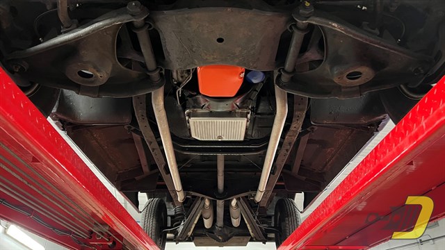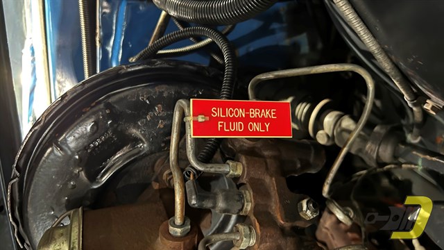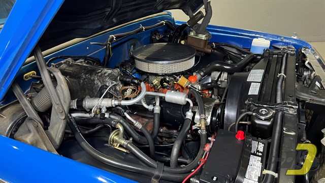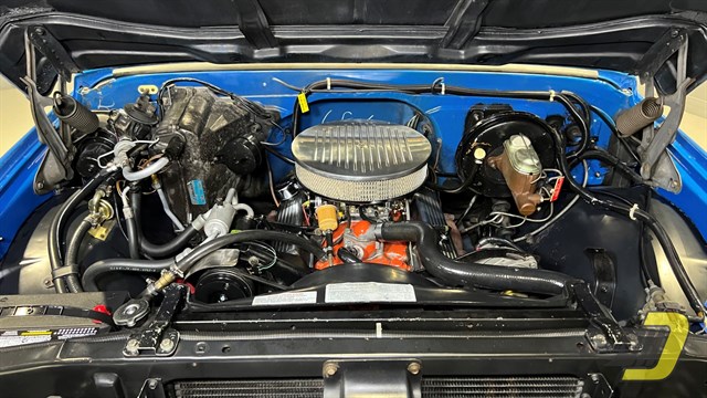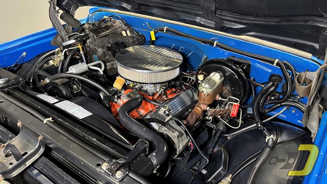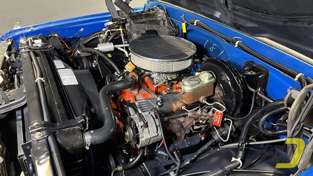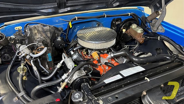 The engine is the original TDJ-code 350ci V8. Updates include an Edelbrock 4-barrel carburetor and HEI ignition. It also has a matching air cleaner and valve covers. The transmission is a TH350 automatic which had a fluid and filter change in 2024. Other equipment includes power steering and power brakes which have been converted to DOT-5 brake fluid. Recent work includes new brake hoses along with rear shoes and wheel cylinders.