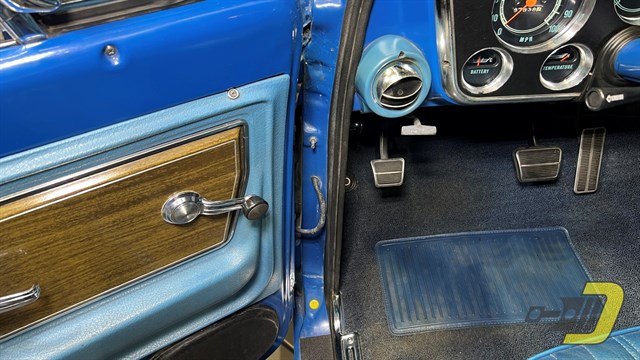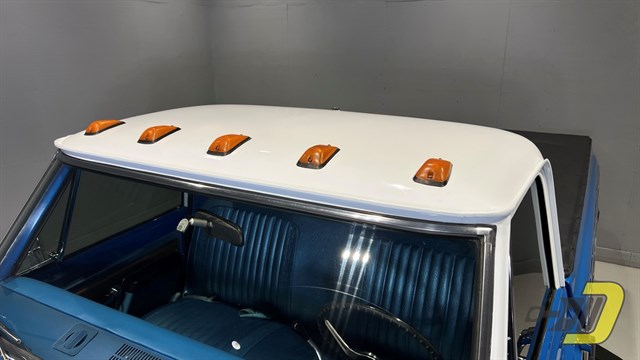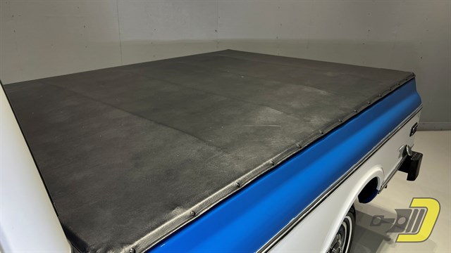 1972 was the final year for the celebrated second-generation C/K series. This long box was sold new by Don Rypma Chevrolet on 12-20-71. It received Ziebart rustproofing which has contributed to a very sold 53-year-old pickup. It has also been repainted its original two-tone colors of blue and white. Factory equipment includes the new-for-’72 Cheyenne trim package which included woodgrain trim, a chrome front bumper, cargo lamp, and special badging. This one also has cab lights and tinted windows along with a wooden bed floor, tonneau cover, modified rear bumper with trailer hitch, and an oversized fuel tank. The 15” wheels wear 235/75 tires from 2015.