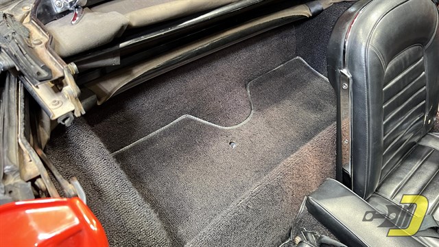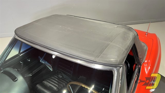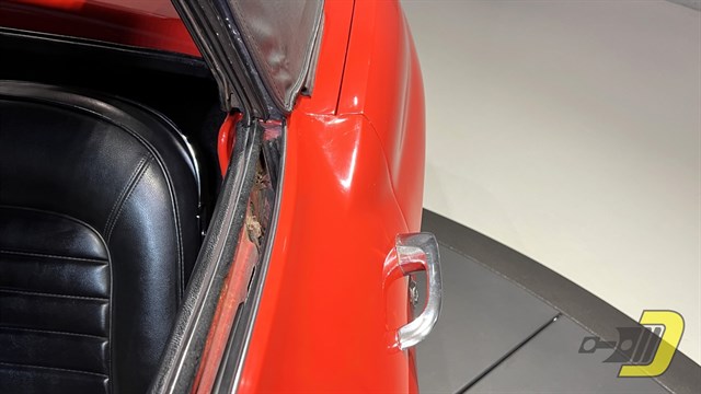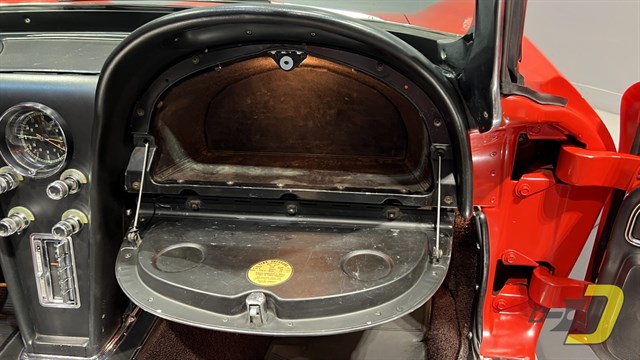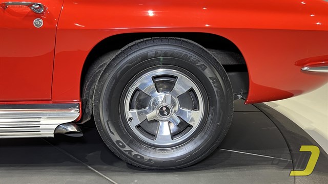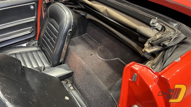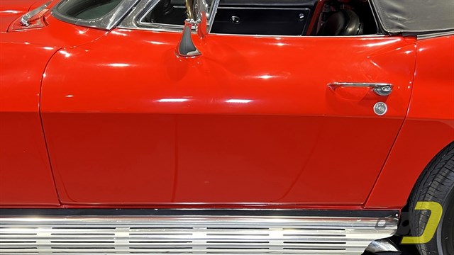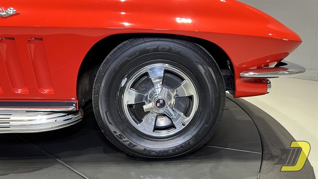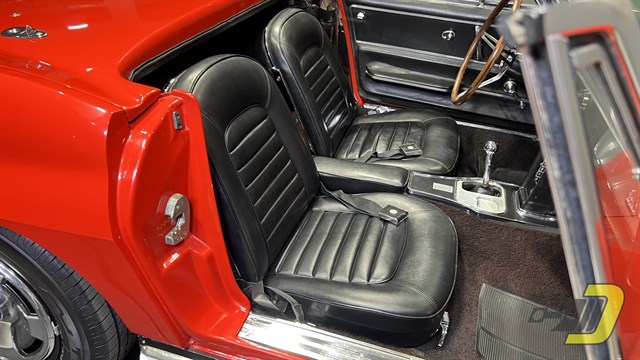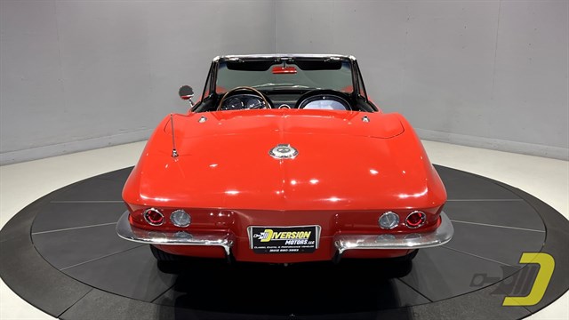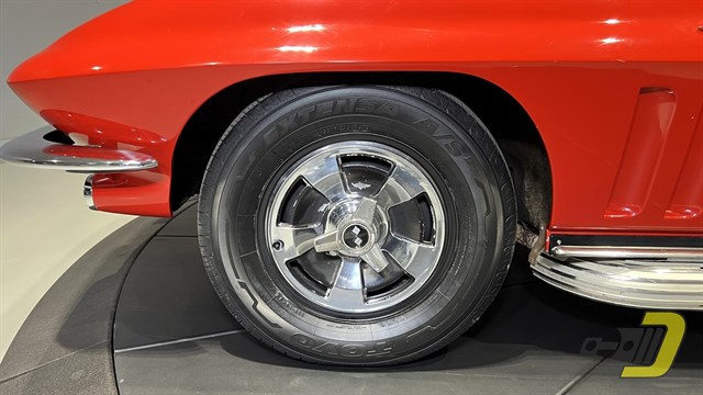 This C2 shows a build date of February 19, 1966. An original code 974 Rally Red car, it wears an older repaint that has some chips and scratches but still looks good from a few feet away. The door gaps are even and the frame and birdcage appear in good condition. The bumpers may be original with some peeling on the front right piece. While this convertible may look best with the top down, it also comes with a red hard top and a black soft top to change things up. The wheels wear 1966 covers along with brand new 205/70R15 tires.