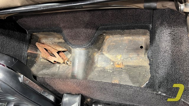 Looking inside reveals a standard black interior that is all stock including the instruments and radio. The seat covers are in nice condition with the exception of a small tear on the left outer bolster. The dash pads and door panels look good as does the teakwood steering wheel. All instruments work properly with the exception of the odometer and the clock. Other functional equipment includes the headlights, dash lights, courtesy lights, backup lights, turn signals, horn, radio, power antenna, wipers, and heater/defroster. It also has a new heater core along with the correct blinking bulbs for the parking brake and headlight door warning lights.