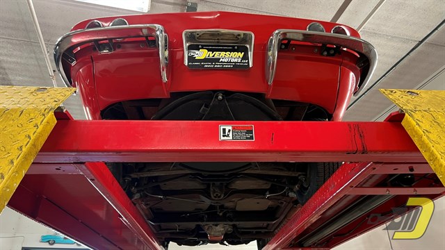 Did I mention this car is fun to drive? It starts from the moment you turn the key and hear the side exhaust roar. The shifter has a tight pattern and is properly aligned for perfect operation. This C2 is also equipped with manual steering and 4-wheel disc brakes, all of which are in proper operating condition. The parking brake also works and a spare tire is present along with an aluminum radiator.