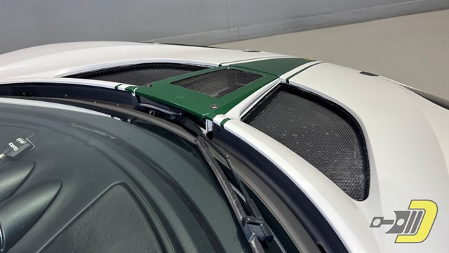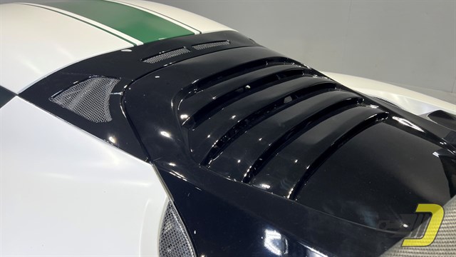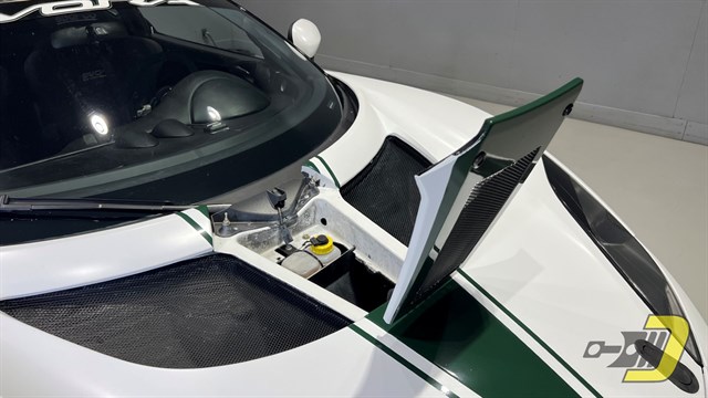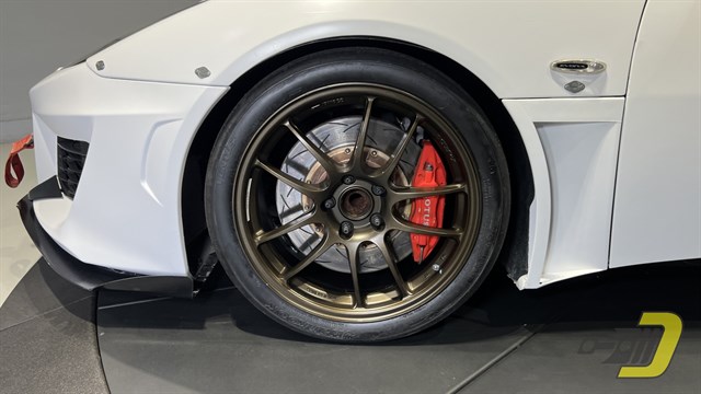 The car was redone in the spirit of the Lotus GT4 racers. The front and rear shells are now removeable with quarter-turn fasteners. There is an extended front splitter along with a rear diffuser, louvers, and an adjustable wing. The body had been covered in scratches from the vandalism incident which was very unsightly, so in 2025 the car received a full white wrap with a green center stripe and other graphics. It’s quite a look! There are also two sets of Enkei wheels included.