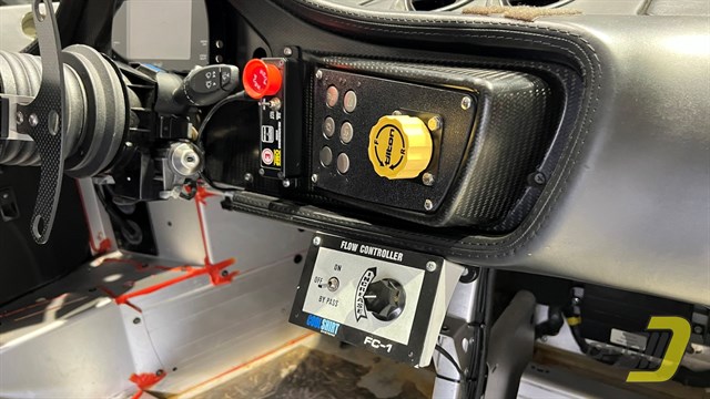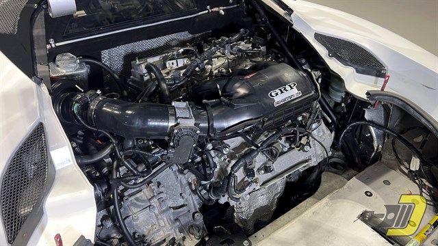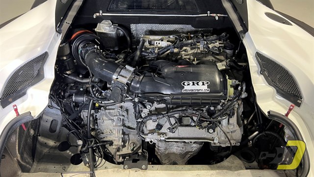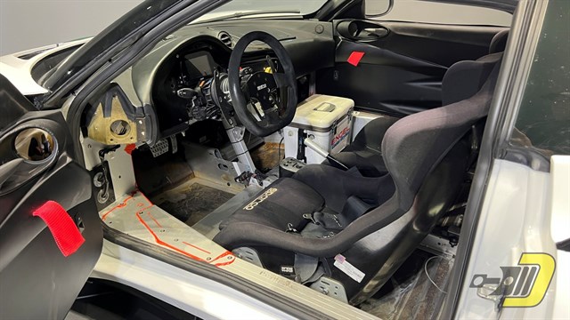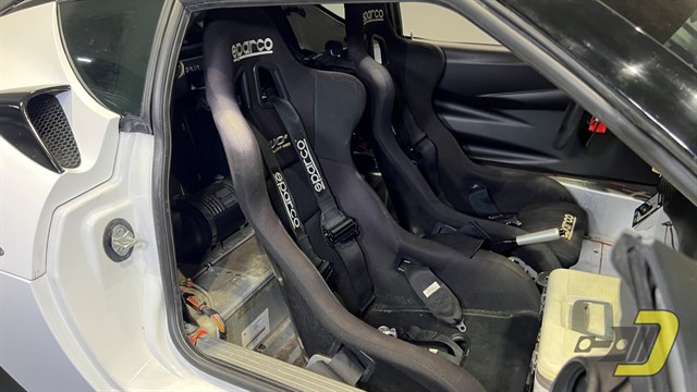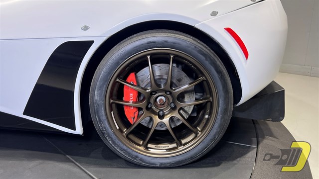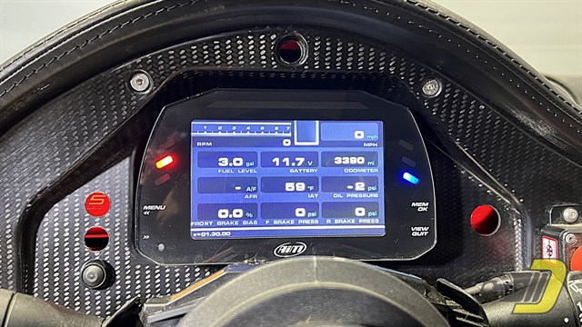 The original 3.5L Toyota V6 received a few performance bits and was retuned. It sounds amazing as the revs build. The engine is coupled to an IPS 6-speed automatic transmission with paddle shifters. The brakes have upgraded rotors and a Tilton balancing system, while the suspension was also redone for the track. The battery has been relocated behind the left seat and includes a cutoff switch.