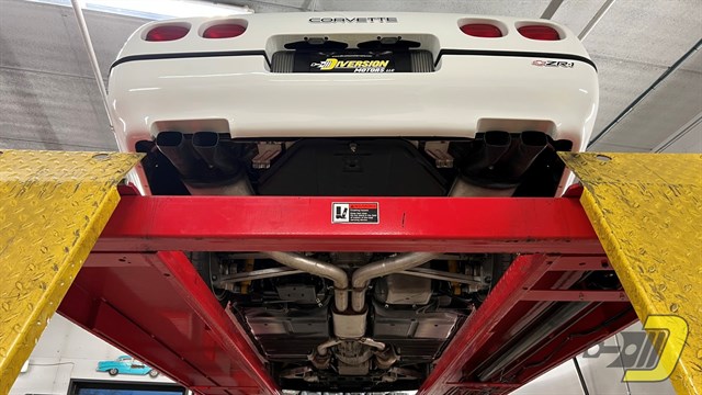 The highlight of the ZR1 is its remarkable LT5 alloy motor. Designed in collaboration with Lotus and hand built by Mercury Marine, this 5.7L masterpiece was rated at 375 hp (a 50% increase over the base Corvette). The DOHC design with four valves per cylinder and a dual intake system represented many Corvette firsts. Its outstanding performance has been well documented as has its longevity. The balance of the drivetrain consists of the smooth 6-speed ZF transmission and 3.45 Dana Super 44 limited slip rear end.