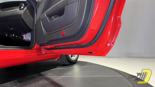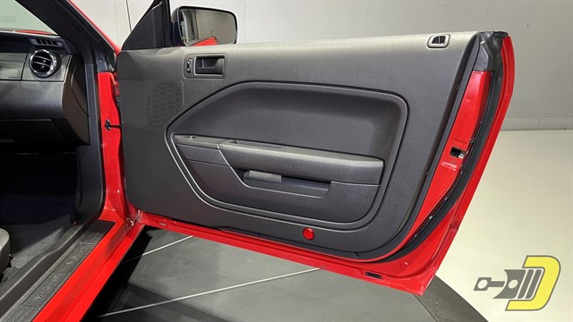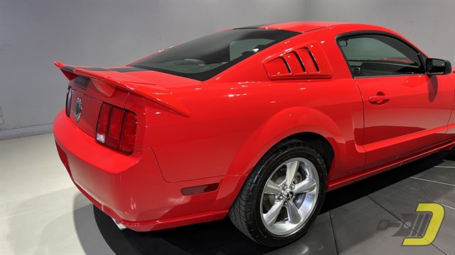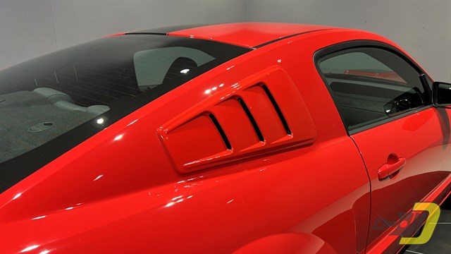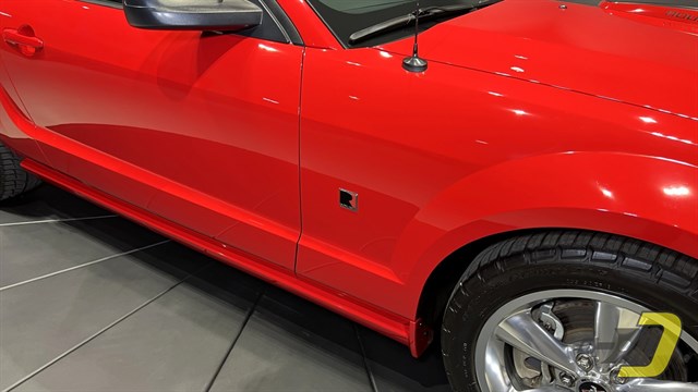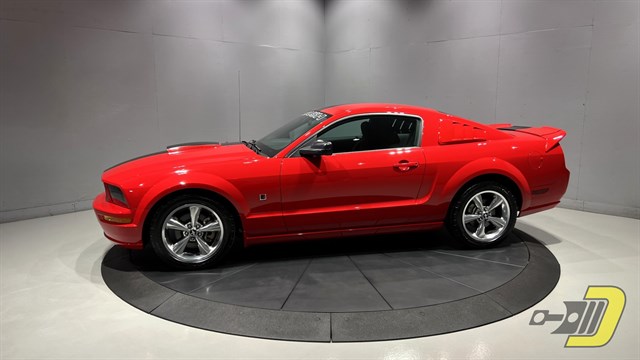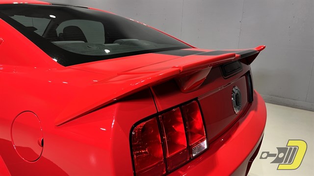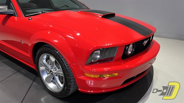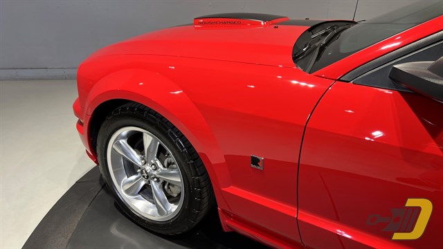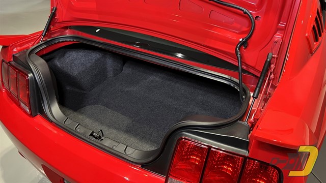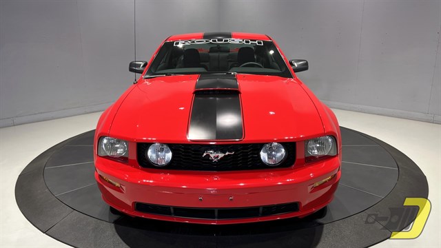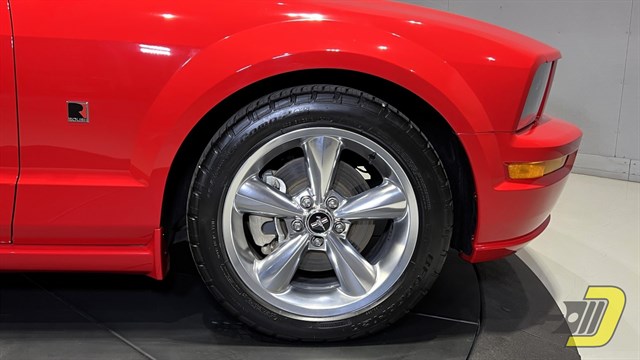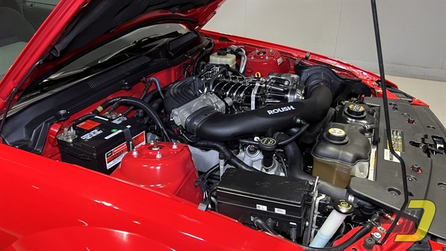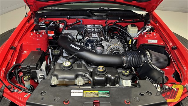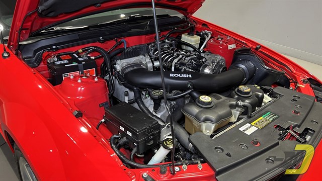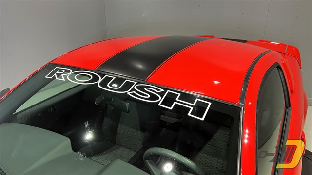 This Mustang has been driven a scant 23,000 miles since new and is very clean throughout; be sure to see the shock towers along with the door jambs and undersides. The car is finished in Torch Red and is accented by a satin black Roush stripe down the middle along with a hood scoop, windshield banner, fender badges, rear panel emblem, and exhaust tips. Additional equipment includes quarter window louvers and a three-piece rear spoiler. The 18” polished aluminum Bullitt wheels wear BF Goodrich tires from 2023.
