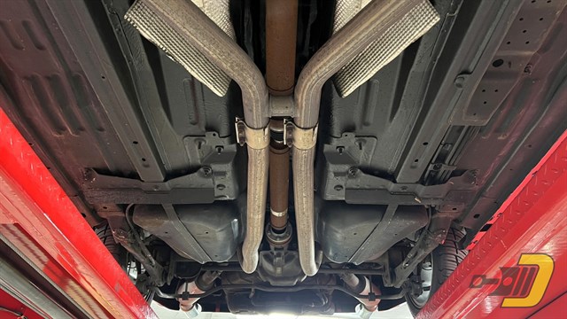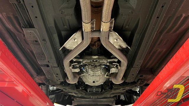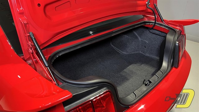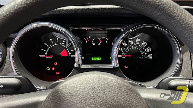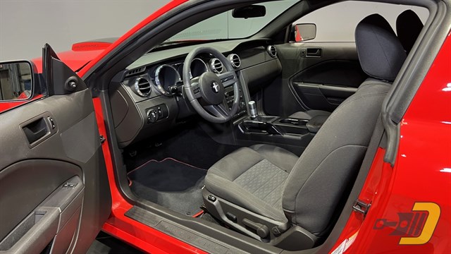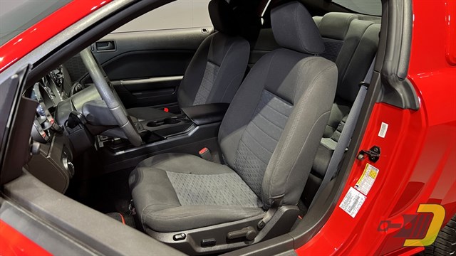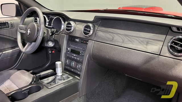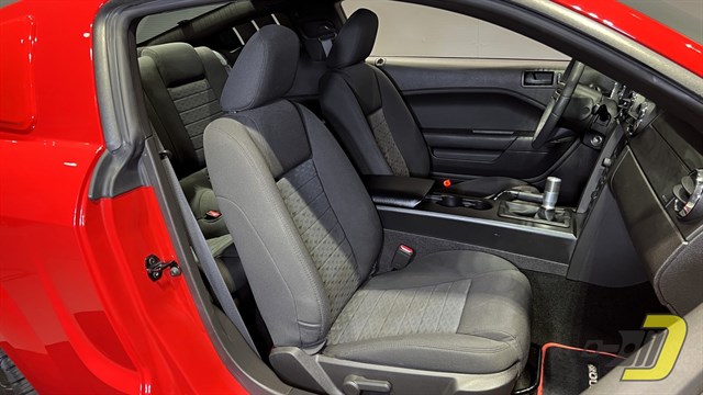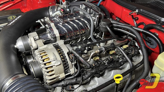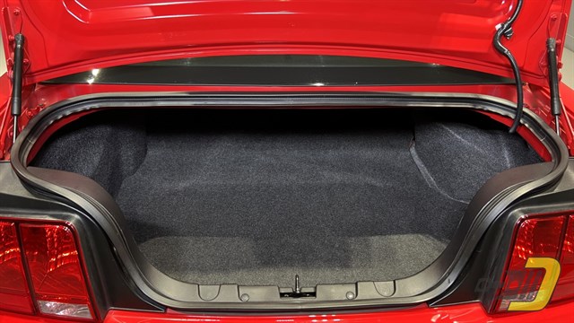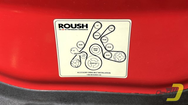 The interior is equally clean starting with the dark gray cloth seats with running horse inserts. The dashboard is all stock and maintains a retro design that harkens to the 1967-68 models. In the middle you will find the audio system and HVAC controls. This flows into the center console with the shifter, cupholders, and storage compartment. Two sets of floor mats are included, those being a fabric Roush package along with some all-weather rubber pieces. The owner’s manual and two keyfobs are also present.