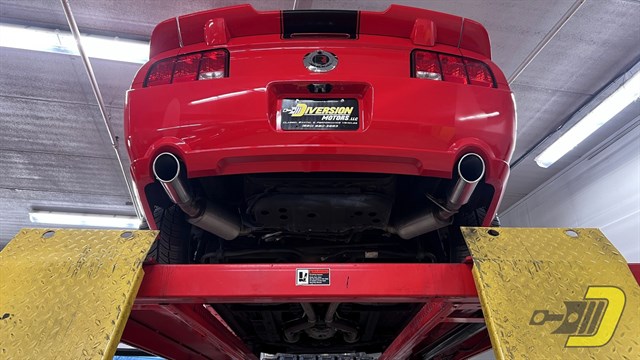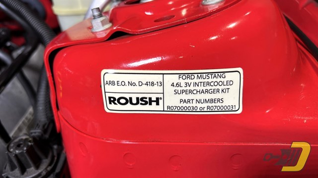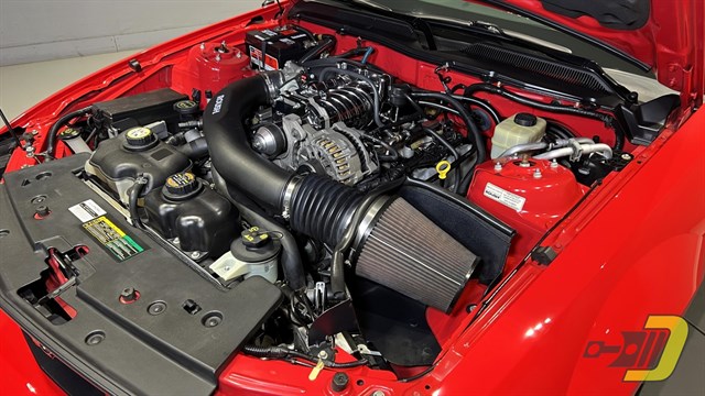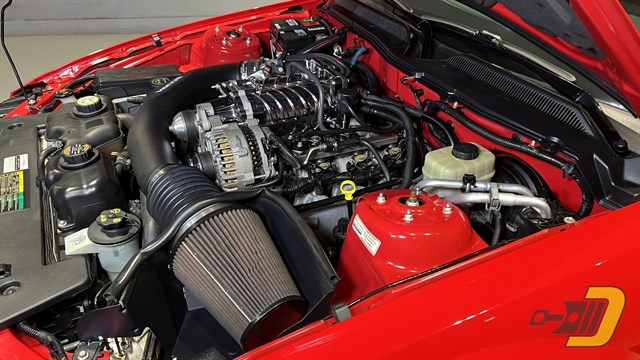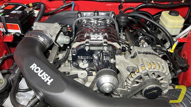 What really sets this Mustang apart is the 4.6L engine topped by a polished Roush supercharger, intercooler, and intake. Along with a special Roush tune this setup provides 435 hp along with plenty of low-end torque. Behind this sits a 5-speed manual transmission followed by an 8.8” limited slip rear end with 3.55 gears. There is also a Roush cat-back exhaust for a few extra ponies and a little more growl. A Roush shifter is also present.