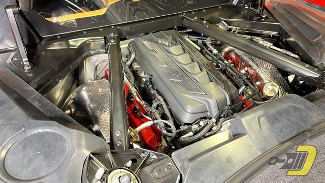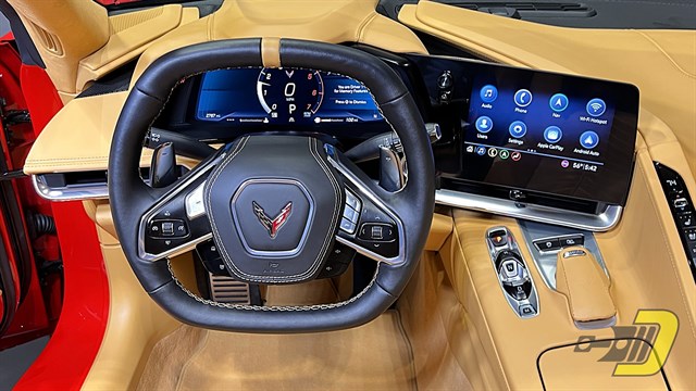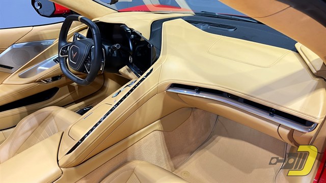 The mid-mounted engine is Chevrolet’s impressive LT2. This 6.2L V8 delivers a factory rating of 490 hp along with features like dry sump oiling and direct injection. Power is delivered through a dual clutch 8-speed transmission that can be operated in automatic mode or with paddle shifters. Note this setup is nothing like previous Corvette paddle shifted transmissions, which were just manually controlled automatics. This design is something else entirely with far greater speed and precision.